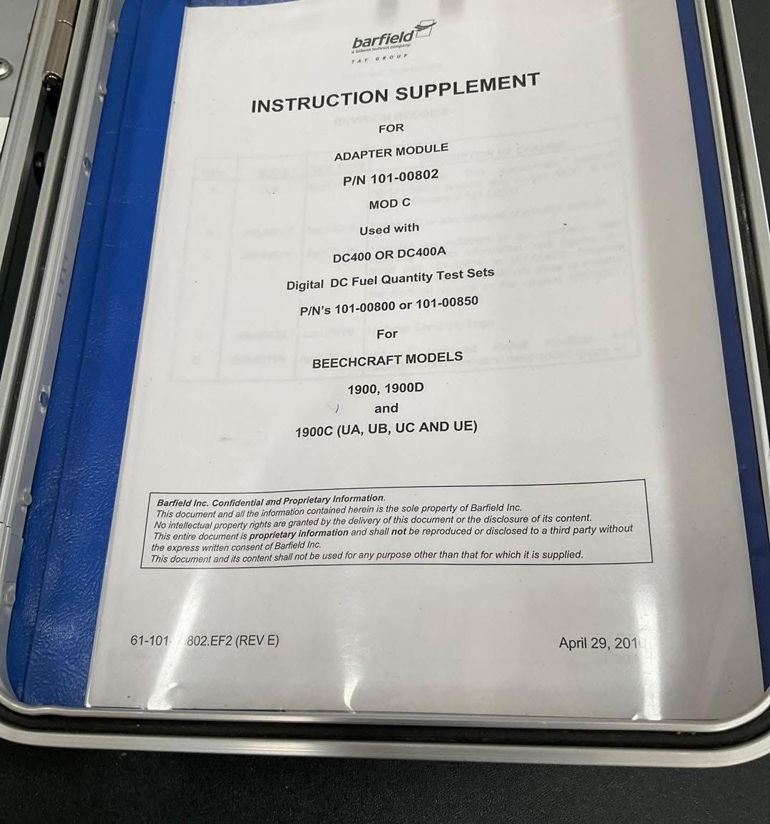 Barfield DC-400A Digital Fuel Quantity Test Set – Complete Kit with Adapter Module (P/N 101-00802)