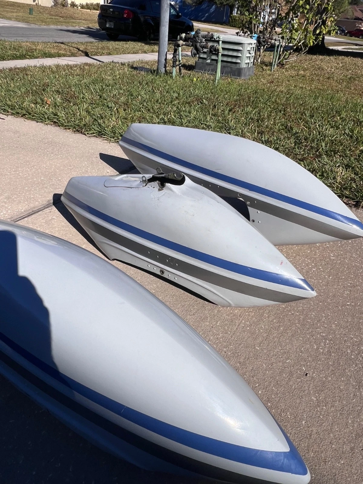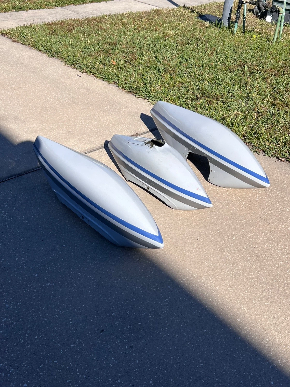 The fairings retain their original factory form and mounting geometry, making them suitable candidates for refurbishment,