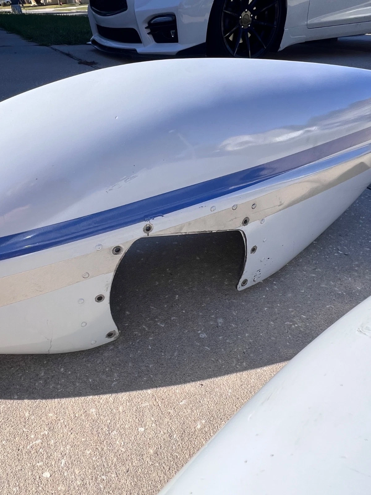 This Cessna 172K nose and main wheel fairings set offers a solid, serviceable OEM solution for owners seeking authentic replacement parts without the cost of new components. With honest wear typical of removed airframe parts and strong refurbishment potential, this matched set is ready to support your next maintenance, restoration, or upgrade project.
