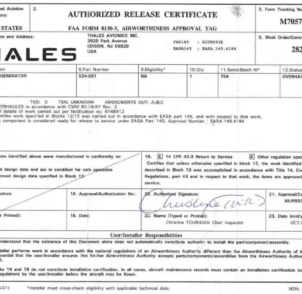 Professionally Sourced: Obtained through verified aviation supply channels with proper traceability
